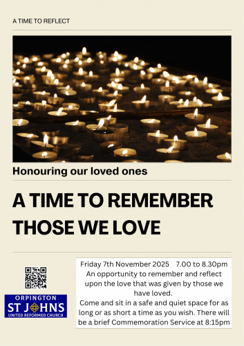 Come and sit in a safe and quiet space for as long or as short a time as you wish. There will be a brief Commemoration Service at 8:15pm